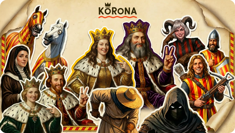 Korona is a fast-paced tactical card game where each player grows their own little kingdom by raising structures, recruiting characters, and attacking opponents. Your kingdom develops as cards stack together, unlocking greater strength and higher scores. Use clever plays and action cards to defend your realm or sabotage your rivals, as you build the most valuable tableau before the deck runs out or victory is claimed by knockout. Compact and quick to set up, you can take it anywhere and play even on a towel by the pool. When the dust settles, only one player will wear the crown!